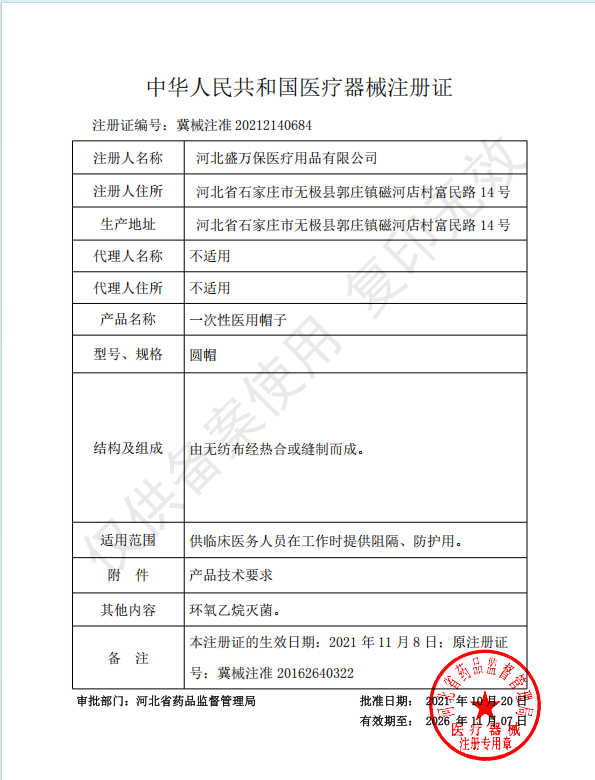 【产品注册证】:冀械注准20212140684